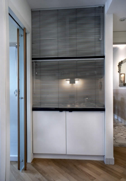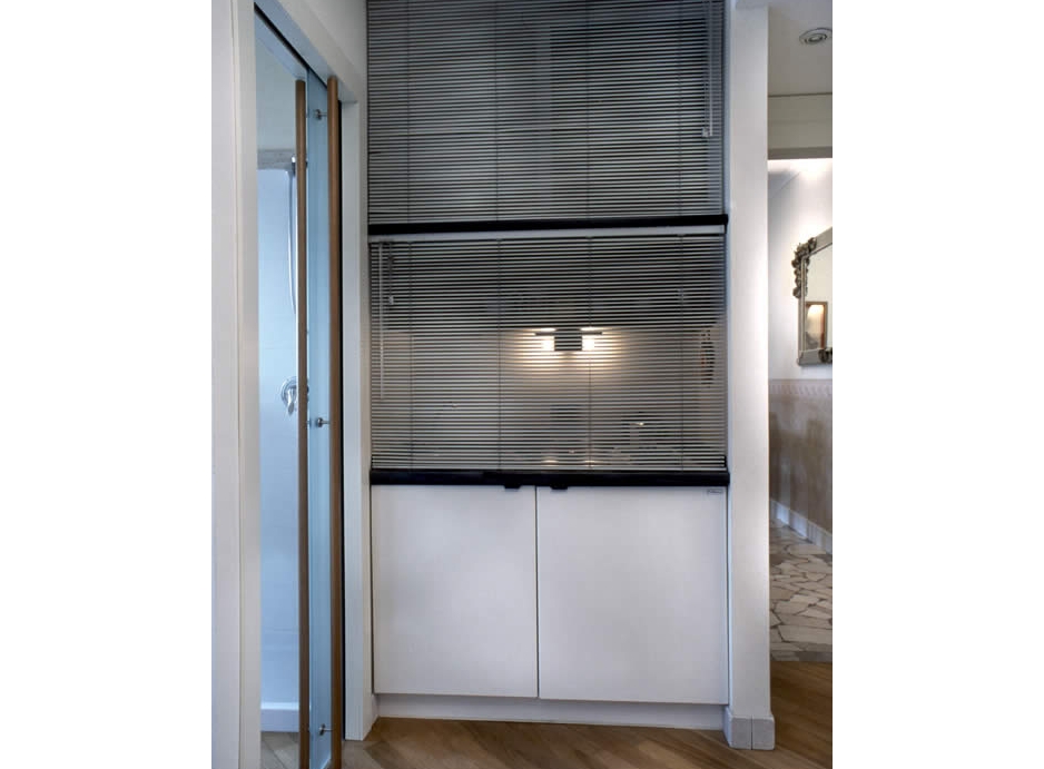 Trasformazione di appartamento uso abitativo in show room nel quale materiali tecnologici moderni s’intersecano con materiali classici.